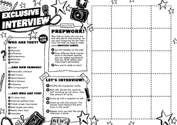 Exclusive interview is a one page solo TTRPG experience, that puts you in the role of a journalist interviewing someone. You'll get to create your celebrity and then write a whole interview with them. The EMOTION CARD system should give you plenty of fun situations! Hope you have fun!